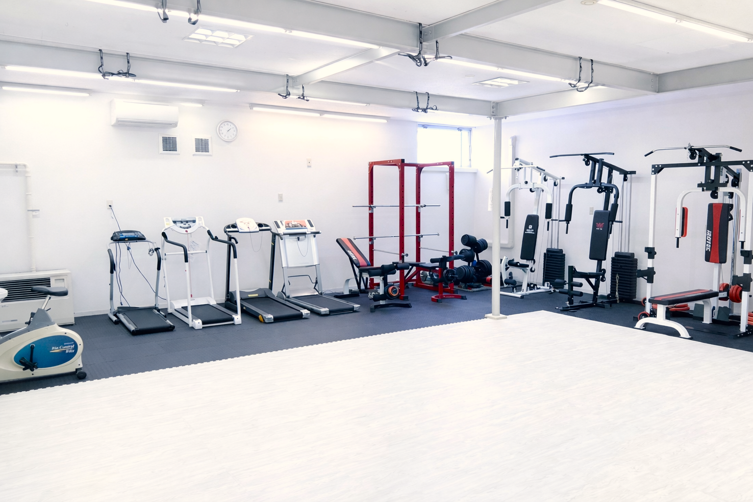 充実の設備:トレーニングマシン・ランニングマシン・体組成計・ウォーターサーバーなど